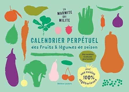 Déclinaison du livre, la marmite qui milite, ce calendrier perpétuel des fruits et légumes de saison est assorti de recettes et d’astuces pour une aller vers une cuisine de transition.